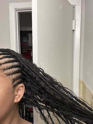 The second woman that started on my hair, just kept walking away and coming back and did this for about two hours straight. When she finally reached the top of my head, it took her about one and a half hours to complete because she had to braid the end of my hair.
