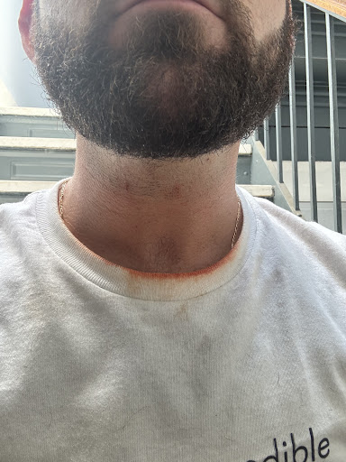 When I got home and untied my hair, chunks of it fell out from where he was sloppy with the razor. Of course, he had cut a huge patch of my long hair out. Never going back to George's. Unsure why they even have 4.9 considering the barber didn't even know how to spray, comb, and clip back some hair that was in the way.