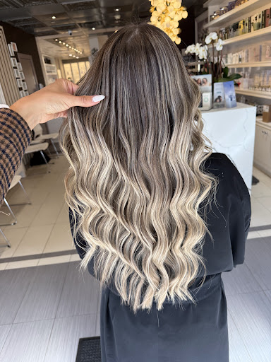 Read moreOne of the best salon's I have ever been to. The decor is trendy and modern, but it still feels cozy and there is no cheesy decorations. It's done very tastefully. There are couches everywhere, there is a bar are in the front with different make up, perfume and cosmetic products. It's the type of salon you don't want to leave. It is also very clean, the shampoo area is comfortable. Everyone in the salon is friendly, appears to be happy and most importantly everyone gets along. All the stylists, staff help each other out and smile, talk, they all appear that they are friends. I love coming to places like this because the working relationships, the attitudes of people who work in service industries really translates to the environment. There is a positive, welcoming and warm vibe. Nothing feels fake! I had my hair done by Sanela, and I can not say enough of good things about her. She's not only gorgeous but such a professional who really understand and loves her work. She listened to me and instantly understood what I wanted. Sanela did absolutely gorgeous job on my hair, everything she did was done with a thought of keeping hair healthy, but also giving it the look that I wanted. One of the first time when I leave a salon with hair feeling healthier, more vibrant, softer and shinier. Her technique is great, she really blends color, highlites, bayalage well. She also understood how paranoid I'm about cutting my hair. Sanela gave me a trim that created fresh ends without chopping too much off (which is what usually happens). I highly highly recommend. As I spend a while there, I saw other stylist Rosa, Elena who were also so great and did a beautiful job on other clients. I'm very impressed...