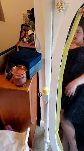 Both of my friends also had amazing experiences here, my friend Sky got this gorgeous flowly white top and a black jacket type thing. Our friend Keira really struggled to find something they liked but with the help of the amazing corset fitting person AGAIN (truly a lovely person, with amazing style) keira managed to find this beautiful black cloack.