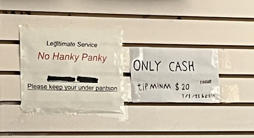 Read moreAfter dropping my puppy across the street for a groom thought I’d drop in for a 30 min foot massage. I only had 30 min because I had another appointment but was in desperate need of a massage as I am 8 months pregnant. The woman I had basically lightly stroked my legs and feet for 30 min then charged me the price for a full hour AND said mandatory $20 tip minimum. Her massage was definitely not worth a tip that was just $10 less than the cost of the whole massage and since when are tips mandatory?? When I inquired further she looked at her coworker and giggled and said she could do $10 then I saw her enter another amount on the keypad. Shady AF. There is a sign saying this is a legitimate business “no hanky panky” but I did take note every customer who walked in during the 30 min I was there was an older gentleman, most of whom seemed to have an established rapport w a masseuse. Just saying…maybe this is where the mandatory $20 tip stems from. Save your time and money if you want a decent massage and...
