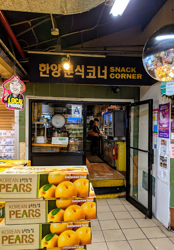 Regardless of whether the food is edible, as some folks seem to think not, I like it here. The 24 hour establishment has changed hands in the last couple years, but remains a good place to hide if nothing else, the wooden tables and benches a quiet respite from Northern Blvd and the busy Hanyang Mart to which it is attached. Come in through the building's only entrance off the parking lot and turn left when you see "Snack Corner," or Hanyang Bunsik if you can...