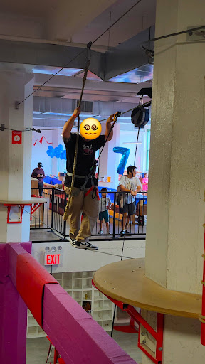Read moreA lot of fun. First visit. Had to wait a few minutes, but fast check-in. 2 different obstacle courses (on second floor) along with so many different wall climbing options. Some delays on obstacle courses though when a really young kid is scared and doesn’t want to continue (and the parent is not helping them!). Some kids also get stuck on the zipline since not perfectly angled down due to ceiling height so may zip back a few feet so need to make sure you commit to it and grab the rope at the end. Workers are all good and will help when requested. They have free square cubbies for your bags/coats, an ice cream vending machine ($6), bathroom across from waiting area first floor, also seating on second floor. They also have locked lockers I assume you have to pay for, but I was able to climb and move around fine with zipped pockets. We were in a tee shirt so it wasn’t too cold nor hot inside. There was one hard climb a bit close to a corner wall and when I landed I stumbled back about 2 steps and my left upper tailbone hit the corner (ouch) of the unpadded wall so I have a bit of swelling there (hopefully will feel better tomorrow). Would have been fine if it was a flat wall. I informed a worker who said she will let the mgr know so hopefully they will pad that...