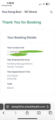 I requested a 90 minute (60 min body, 30 feet). An older lady attended me, twice i requested stronger pressure and it was still too soft. Rubbing against the skin with and occasionally digging deep into the muscle is not very good. I usually get my arms/hands, legs, and full body in major muscle areas done with strong pressure in other chinese spots iāve been to in manhattan, but they only did my back/lower legs and additional feet reflexology which was separate. My head, neck and arms were stiff and I left no better than when I got there.