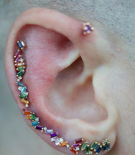 Read moreI LOVE IRIS AND ALL THE PEOPLE HERE AND CARLY SO MUCH! I stopped in one day to ask for pricing for the piercings I was interested in, and I was immediately greeted by all staff with warmth and welcoming. Carly introduced themself immediately as the person who would do my piercings if I decided to get them, answered all my questions, and gave me their card as well as the invitation to send them any questions I might have while considering/planning. Ro helped me with such sweetness to schedule an appointment time and then later to reschedule it when I made a mistake looking at my calendar. When I came in Ro walked me through possibly jewelry options and pricing while being super welcoming and making sure I was feeling comfortable and also excitement for me and my new piercings! I was never misgendered and I was asked from the beginning if the name on my ID or anything was what my preferred name actually is as well. Carly then did my piercings as they said they would a few weeks before which was great, and the whole experience was really positive and body affirming. I got my nips pierced and was a little worried it could be awkward as it's kind of a personal placement but they were amazing with their professionalism. They were very conscious of personal comfort and boundaries, very welcoming and honored any concerns or placing adjustments I voiced while also providing their professional expertise. They spoke with body neutral language, using words like "anatomy" without positive or negative connotation. When I went to the bathroom there were pamphlets about sexual health, assistance for people experiencing abuse, depression, etc. I felt like I was in a beautiful, safe, queer space the entire time around all the staff. Every part of the process was explained to me beforehand in detail and my consent and comfort were always the priority. Carly was very attentive to make sure I was feeling okay during the piercing experience. Afterwards Carly very clearly answered further questions and was very clear about aftercare processes. I have stayed in contact with Carly online to ask questions and they have always been there to answer my questions! Ro has sent me follow up questions as well to check in on how my healing process is going and if there's anything else I need and it is the most care I have ever received from people in a body mod space! Not to mention the whole time everyone kept affirming that this is how it always should be! I feel lucky to have met everyone there and it's been a pleasure when Ive gone back for more aftercare supplies to be remembered and welcomed back. I love walking by Iris and waving at everyone. Not to mention my piercings are beautiful and perfect and the healing process has been super easy for me! I can't wait to go back to get my jewelry switched out and to get more piercings from them in...