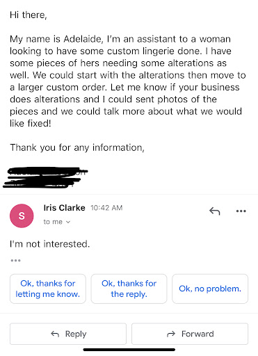 ETA that minutes after I left this review I get a call from an unknown number and I told myself there was no way....I look the number up on google and sure enough, it was Iris Lingerie. Imagine thinking to carry on harassing a customer in their own home. I blocked the number and immediately reported her to the BBB, as I would urge everyone who had a similar experience to do so. I 'm a very quiet, cheerful person and maintained my dignity during this abusive exchange which I guess made her think I was the perfect victim but she mistook my personality. I have no patience for abusers and bullies. I was going to leave it at the 1 star review and move on but the audacity to call my cell? I will report...
