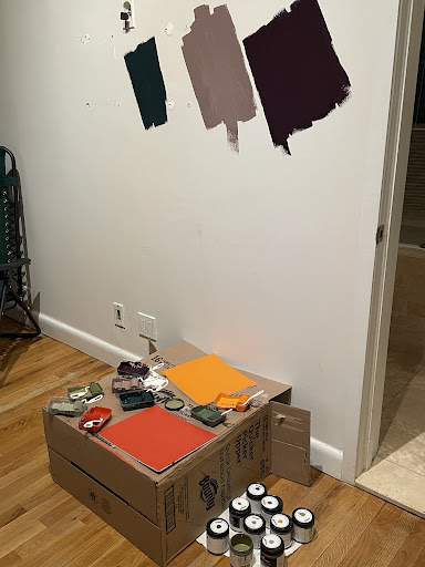 I also made a trip looking for wallpaper. There were so many catalogs to choose from, I couldāve spent the entire day there. A self-proclaimed wallpaper geek, Marnie gave me advice and coordinated with a wallpaper expert who selected additional options. I was between a few colors in one book and she let me borrow it! Plus, she let me cut out a little strip so I could coordinate other decor. Wow.