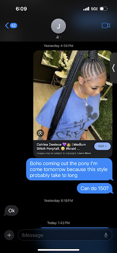 I contacted the owner via call from google inquiring about the price. At first she stated they are closed; she then called back and asked what I wanted done. I tolde Boho knotless Bon She (JJ) told me that it would 180 and she would verify with the braiders in the shop and call me back. She called back saying that I could go, I verified if she took cash only or card, she stayed they tool zelle as well. I went and got my hair done , once it was done I said what is the zelle , the braiders looked confused. I told them the lady on the phone told me you guys accepted zelle as well, however they did not know that or know the zelle. They called her via another person(around her)Trying to get the zelle. I then said 180 right they started saying it was 230 For KNOTLESS BOHO BOB. I then said I was told 180 so how is it 230 they started saying its 50 extra for the curls and i didnt bring my own. I explained that the lady on the phone said it was 180 and didnt say anything about $50 extra. They then called the owner and she started speaking very hostile towards me, I explained that she didn’t tell me about the extra or else i wouldve brought my own curls… they kept trying to coerce me to pay $230 when I was told it was 180. The owner JJ THEN STARTED THREATEN ME SAYING SHE WOULD GET THE VOODOO MAN ON ME IF I DONT PAY THE 230. I then explained im not paying 230 because I was told 180. She then threatened to call the police i said okay. I SAW TWO POLICE OFFICERS WALKING BY AND WENT TO OPEN THE DOOR TO GET THEM BUT THE WORKERS LOCKED ME IN. I ASKED COUNTLESS TIMES TO BE LET OUT BECAUSE I PAID THE 180 ( which JJ TOLD ME WAS THE PRICE) AND THEY WOULD NOT LET ME OUT. AMD JJ WAS YELLING ON THE PHONE SAYING THEY ARE GOING TO CUT THE CURLS OUT AND SHE WILL COME AND CUT THEM OUT HERSELF. I said okay come and proceeded to call 911. Whilst on the phone with 911 they decided to let me out after 20-30mins……. The officers later came and the owner was still on the phone being hostile EVEN WITB THE OFFICERS. They explained to her how they were wrong. KEEP A PAPER TRAIL EVERY WHERE YALL GO. THESE SALONS WILL LIE AND TRY TO MAKE YOU PAY FOR...