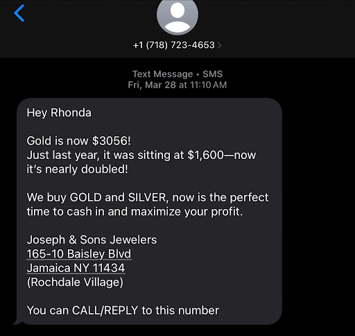 I visited Joseph & Sons on Friday 3/28 after receiving a promo text about gold buying rates.(screenshot attached) I brought in a 14k gold pendant & matching chain in perfect condition I previously purchased from their store & two small pieces of body jewelry.