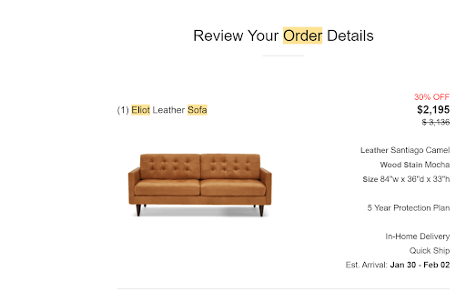 Their construction process took a few weeks, but this was expected; we knew up-front that we would need to wait a few weeks as they constructed our made-to-order furniture. As they promised, we received regular-yet-cryptic updates on the construction of our furniture. Steps like "design approved" and "team assigned" weeks in advanced of actual construction likely reduce their call volume, but don't really mean anything. Unless they're either explicitly rejecting someone's fabric selection, which they won't, or they're letting me know who is building my sofa, which they don't, neither update really matters.