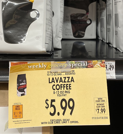 At the cashier, the coffee price became $7.99 and the second one was $13.99. The cashier explained that the price $5.99 is for the club card holder, and the offer is limited to only 1 item.