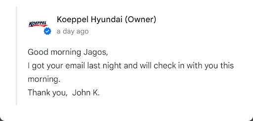 EDIT/UPDATE The Owner Loyalty Manager(John Knoesel) read this review and said someone would reach out. It has been 1 week already and no one has contacted me. This is exactly what is expected...