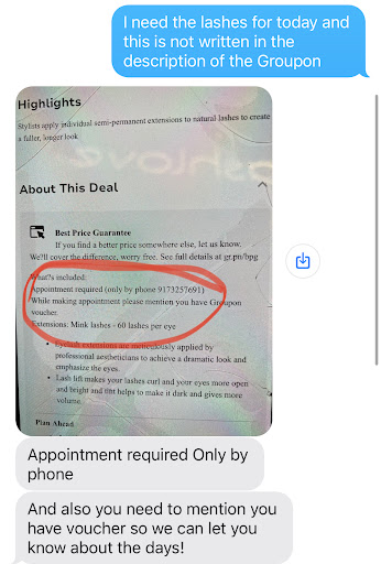 Final verdict: go if you have the option not to do the lashes with Candy (sorry to throw you under the bus, girl). If you don't want to chance it and location isn't an issue for you, then there are tons of other Groupon...