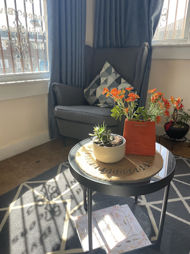 The inside is super cute and cozy, and thereās a sitting area. Thereās also a bathroom inside. Sheās located on the second floor, in the same building as sushi island. If youāre driving here, thereās a small parking lot for customers.