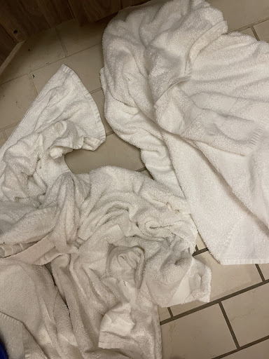 Towels are visibly old and pretty thin. They're either so old they've started to yellow, or they're being dried on too high of a heat by whoever cleans the towels. (I didn't see an in-house laundry for them, but I didn't check too hard.)
