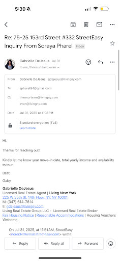 Eventually, after almost two weeks of trying, we finally agreed to meet on July 7th at 12:00 PM. The morning of, I get a text from Cade asking me to come at 11:30 instead. I made it clear that I could not come earlier and asked whether we needed to push to a later time or reschedule entirely. Honestly, after all of the hiccups, I was ready to call it quits. But the apartment looked stunning and I was genuinely hopeful — so I stayed professional and optimistic.