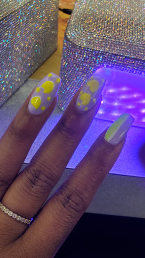 Read moreI've come to this establishment 3 times. After the 1st time my nails got worse. The pictures attached are from my final time there. The woman kept asking me if I wanted a design so naturally I assumed she wanted to do one and/or she was capable of doing it. SHE WAS NOT! My nails are thick in some spots and misshaped. The design was done rushed and in frustration I assume because her next appt had shown up. Its a simple heart design and they all look like BUTT. It was so ugly I opted out of putting hearts on my final finger and she still ruined the dot design. The fingers that are half on color and half another are not equal parts. I left that place feeling like I could cry. I was so frustrated and annoyed. I took a picture and she actually thought I was taking a picture bc I liked it. NO! She did me and herself a disservice....