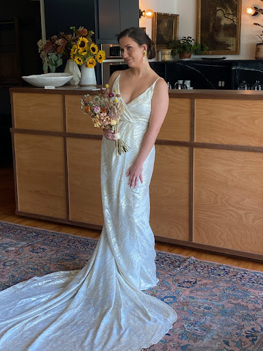 Read moreWhen I first started looking for my bridal “dress” I knew early on that I wanted something non-traditional. I knew I wanted a jumpsuit or flowy pant look, so I started scraping the Internet looking for one. I must have scrolled through thousands of images of bridal looks across Pinterest, various designers, and vintage shops with little interest in anything I found. It wasn’t until I finally found a pair of off-white wide leg pants online, that I thought I could explore custom bridal wear. I searched online for custom bridal designers in the NYC/Brooklyn area, and came across Loulette Bride and was immediately drawn to the “vibe” of the website, images of the warm and cozy salon, and the variety of the looks and fabrics from the selection of pre-designed dresses. A friend and I went to Greenpoint to meet Marteal. The salon is as beautiful and inviting in person as it looks online. All I needed to do was share a few thoughts of the look I was going for and some pictures from Pinterest for her to totally get the vision. She immediately got to sketching right away and within 20 minutes we had the look. From there, we went over to the dresses she had already made to get of sense of the different fabrics that would work for the custom bodysuit. I was in awe of her creativity and ability to take an idea I had in my mind and bring it to life. We created this look together that I absolutely love and could have never found online, ever after spending what felt like hundreds of hours looking for. To top it off, the pants I bought online had pockets (yay) but the fabric was a bit see through for a wedding. We thought we would have to remove the pockets but Marteal came up with a solution to add a thin liner to the pants which allowed me to keep the pockets! When you’re working with (M) it feels like you’re hanging with a friend, who is genuinely as excited for your special day as you are. She sent me home with a colored sketch of me in my full look which I’ve since framed. I love my custom bridal bodysuit – it’s a timeless piece that I’ll get to wear again. I couldn’t sing more praises for Loulette Bride,...