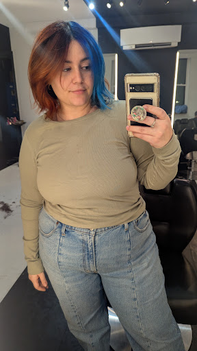 I have been coloring my hair for over 12 years and have decided to embrace my gray. I showed Jamie a picture of hair color that I wanted which was a combination of black with some gray highlights. Unbeknownst to me that the picture was created with AI! Wow!
