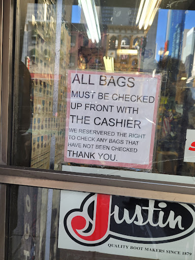 I get the new shoes and walk around for a minute with them. I told him that they were a bit tight so I wouldn't be buying that pair yet and that I was going to look at another. I also take a picture of the boots tag (that includes size and serial number that I can use for reference for research) and this finally set him off.
