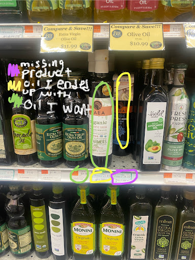 I like the employees at that location, they are friendly, I’ve seen them a bunch of times, it’s hard for me to reconcile this experience with my normally positive feelings towards them and their store. I think I’m done shopping there unless they: A) give me the olive oil I deserve ✨(I’d update the review if they did) Or B) start stocking the columela sherry vinegar that’s not reserva again (they’ve been out of it for a while) And then that’s only because that’s a product I know the price of.