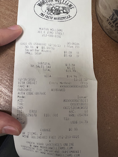 Read moreI have been a loyal customer of Morton Williams for over 10 years, I went into the store to buy some soda and maybe some snacks. I brought a frozen food from home because I work down the street. So when I did not see the snacks and soda I wanted I decided to leave. An idiot security officer stopped me STOLE my frozen food and threatened me to that he will call the police. I reported him from work and also contacted my attorney, I don't take kindly of being falsely accused. I WANT HIM FIRED! I will never shop here again. Go to gristedes instead, they treat their customers with respect.