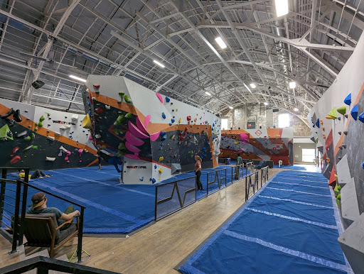 I appreciate route setters and staff. All are friendly and helpful, with great attitudes and positive dispositions. When kids come around, I can tell they're pushed to their limits, but they watch and interact with the little runts in a caring manner. As an adult with no kids, they do get a little annoying - but it's heartwarming to watch how they torture staff. The gym area is decently equipped and safe from sed children. I do notice that one or more of the cardio equipment is out of order. Seems to be neglected. The cleanliness of this facility compared to LIC and Brooklyn, however, is slightly lacking. Nothing horrible, but the mats could use a strong vaccum. Otherwise, it is a clean facility. Restrooms are clean. The Male showers could use little better cleaning. Overall, this is the go-to when trying to improve grades of bouldering. Find its routes easier than LIC...