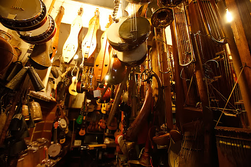 Read moreOwned by a gentleman who usually sits right out front with a majestic beard and a soft voice. Once you enter be sure not to clunk your head on any of the many hanging instruments. The floor also becomes a sneaky ceiling as you travel down the steep and narrow staircase so trust me on this one, you'll want to climb up and down it as if it were a ladder. You'll save yourself from accidentally seeing stars in the middle of the day. As for the selection of instruments, I've NEVER seen a store that carries so many unique and cultural instruments from around the globe. Music Inn also holds many instruments from previous eras of our musical history. Expect a higher price, as these bad boys (and gals) could be discontinued, special-made, rare (or not commonly sold in the USA), and one of the biggest reasons, it's located in the city-island of Manhattan. You'll see Djembes, koras, mbiras, udus, asalato (kosh kash), tabla, various woodwinds, intriguing string instruments and tons of percussion. There's no doubt that you'll find some fun here. To top it off, Music Inn hosts an open mic night on Thursdays....
