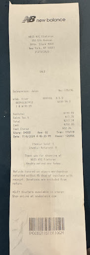 Ā Ā Ā Read moreI would rate this place a zero if I had the choice. Pathetic, horrible and rude service. Never buying a New balance shoe again the people who assisted me with the shoe their service was great but iāll Get to my story. So I bought shoe from New Balance and wore it about 3 times and the place where the fabric touches the leather by the toes starts to rip. So I called the store and luckily the manager picks up the phone and tells me to bring in the shoe and will have a look at the shoe and see what he can do. So I get there and he looks at the shoe and tells me the āonly thing he can do for me is if I buy a shoe heāll give 20 percent offā and I notice the promotion in the store is 15 percent off already plus if you spend $100 you get a $20 gift card towards your next purchase. So I told āRubyā the manager who offered me 20 percent that the promotion is already 15 percent and the only thing you can do for me is 5 perecent if I buy a shoe? After purchasing a horrible product this is the way you accommodate a customer? Anyway I agreed to buy a shoe and receive the 20 percent off but when I get to the register again there is a problem with this. The girl who helped me heard the manager tell someone to give me the 20 percent off because he was leaving but he couldnāt be found so she called another manager and then that manager had a problem with giving the extra 5% off and the shoe was already ringing up to 15% off. So I told him the whole story and he said heāll make it 20% which he did not because 20% off $100 is $20 which I had a hard time explaining it to them because they only wanted to give $19.75 discount and when I asked the manager that 20 percent off $100 is not $19.75 he got rude with me and said we are doing you a favor by accommodating you. Oh really are you? You can shove the $4.75 accommodating me by making me purchase another $100 shoe which I didnāt need. Returning the shoe back today and never returning to New...