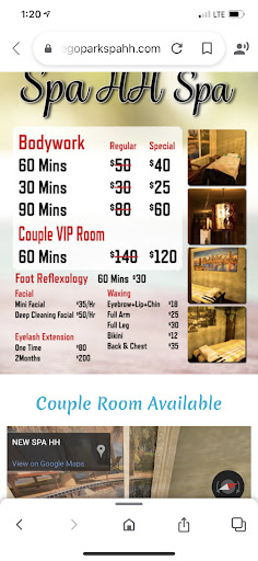 Ā Ā Ā Read more$90 for a 60 minute couples massage. A bit alarmed that they require a $15/masseuse tip for a $90 massage (that's almost a 34% tip...). However, with how cheap the base massage is, we paid it. Whatever. We also arrived for our 1pm appointment on time and weren't shown to our room until 1:15pm, with no apology extended. Our massage then didn't start until 1:30, again, no apology. If I wasn't so post-massage spacey, I probably would have denied the additional tip for that reason alone. As for the facilities - clean enough, however it smelled of cigarettes. Thankfully, our treatment room didn't. Not a standard massage bed, it was a flat bed with a round pillow for your face. The massage - Good pressure, and they checked in with us regularly if it was ok/too hard. My fiance's masseuse walked on his back, which he loved. It was mostly a (good) back massage with a little attention paid to our arms and legs. Unfortunately there was no flip over and our front wasn't massaged. I was really looking forward to my chest and stomache being massaged as well as the fronts of my legs and arms. However, there was an unexpected hot stone session worked in, which was really nice. Overall, now that we know what it is, I think we would go back. Inexpensive and got some kinks in my...
