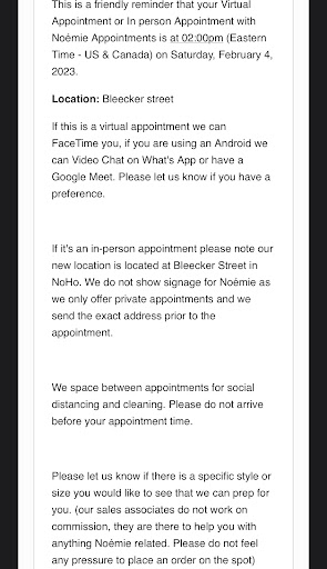 Read moreI bought a ring for my wife recently, and though the ring itself was beautiful and seemingly of good quality, the fit was unique and uncomfortable to wear after a few minutes. After trying a different size, we sought to return the ring and we were unceremoniously told that despite being within 30 days of delivery of the ring (shipped 6/9/2023, tried to return within 2 weeks), Noemie would not honor the return of an unworn ring, but would give us store credit. Despite multiple representatives of the company admitting in several interactions that the return policy was not clear, and despite being very clearly within the parameters of their return policy as it is written, we have been refused refund. Unfortunately, we now will have a $1000+ store credit to a company I not only have no interest in doing more business with, but I also have no faith they will exchange or return future items. For a primarily online company that requires items to be shipped to even be tried on, this seems like a very poor business practice. I would highly recommend looking elsewhere for jewelry, and would not trust any of their advertisements of return or...