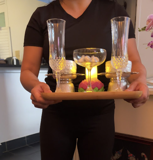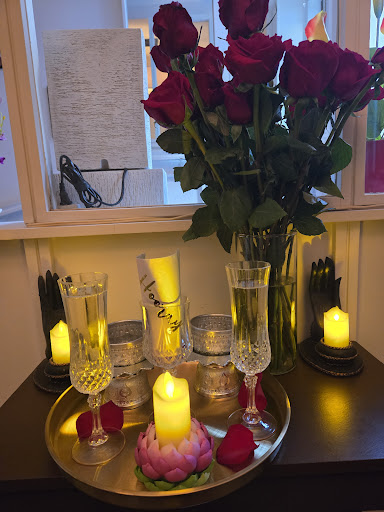 I surprised my partner with a one hour couples massage, and let me tell you that my partner was not the only one who was surprised at this experience. The entire atmosphere when we arrived was extremely calming and relaxing, the person at the front greeted us so kindly and had us check in quickly for our massage. Once we checked in they surprised my partner with a full bottle of champagne and chocolates, they brought it out in an extremely decked out arrangement and sang happy birthday to him. They did give me a call a couple hours ahead of the reservation time to ask what type of massage we would like and I did say it was a surprise for his bday and that I should allow him to decide when we would arrive, because he had no idea we were going, and they definitely contributed to the surprise factor. The real highlights were the massages, the therapists easily could tell how much pressure to apply although they asked to assure we were comfortable the entire time, I can not explain how much they really helped the aches and pains I had in my back. My calves are also really sore from time to time and I was extremely happy with how intense she massaged out my calves and other focus areas. We chose the combination massage which came with some stretches as well like in a Thai massage, I felt like I had more of a slight chiropractic massage, my back cracked a few times leaving me feeling so relieved and extremely light at the end of the experience. It was basically a deep tissue massage with also some Thai massage elements incorporated throughout, I HIGHLY RECOMMEND!!!! Luna and Pranee were both amazing, my partner did not stop explaining how much he enjoyed his massage and overall experience after we left. Thank you so much ladies, the massages were great, and you were so awesome for the special surprise and birthday wishes! We will definitely be back to try out a full Thai massage...