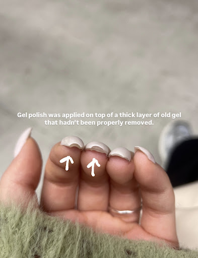 From the very beginning, the service was uncomfortable. During the removal of my old nails, the technician used a drill with high intensity, such excessive pressure that it caused pain, and she never once checked to see if I was okay. The lack of control even caused two of my nails to break, requiring repair work.