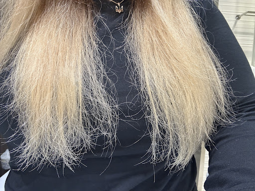 I ended up leaving the salon with my wet hair (no need to make matters worse by blow-drying it) in tears. The result was yellow, dry, straw-like hair, damaged so badly that I dare not do anything else to it except cut off the worst damage. I messaged Arsen on my way home, and he assured me that Jhese could fix it. Not in a million years was I ever going to let him touch my hair again. How can you fix fried hair? My hair is fried, and it will take years to grow it out.