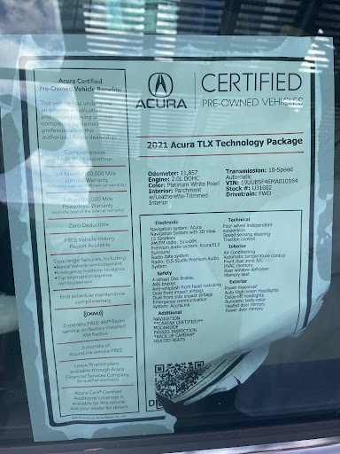 My friends and I saw a, what-I-thought was a 'great' deal on their website, a 2021 TLX Acura "CERTIFIED" Pre-Owned @ $26K flat. We went in-person to check it out, Car looked great, sticker says Certified Pre-owned, everything checked out.
