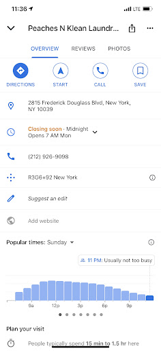 I actually have seen this "attendant" interact with other customers who have run a bit over the time who were white, and she seems very pleasant with them. I wonder if my skin color (I am black) had something to do with how rude and confrontational she was towards me. I don't believe that running a bit over the closing time while drying clothes gives an owner or business attendant in a laundromat grounds for being awfully rude, disrespectful, antagonistic and confrontational to a customer. I have never seen a "last" customer in a laundromat be treated like that. As I stayed to patron this business with my money, I should have had the right to complete my job, I was not staying to fold due to the time constraint. I feel that I did not deserve to be treated that way by her and because of this experience, unfortunately I will never return here. I am REALLY glad that there are other laundromats (I hear there is one opening on Macombs Pl soon AND I was just told that there is one on W 153rd called "Uptown Shine") that will provide other...