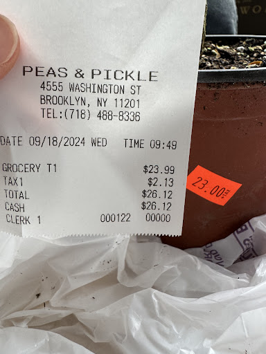 Read moreBEWARE! Peas & Pickles regularly cheats its customers. I work nearby and only go here when necessary, because the prices are higher than other establishments, which is fine. But they should charge the price that is shown on the item! Instead, the owner, who is always at the registers, will charge a higher price, and hope you don't notice. This has happened to me more than once. I mentioned this to my coworkers, and several others agreed this happened to them. I called out the owner the last time I was there and was upcharged by over a dollar on a $10 total. This time, she charged me $23.99 plus tax on an item that is clearly marked $23.00. This woman is skimming $1 or more on every transaction. Honestly, this is a criminal organization and I would...