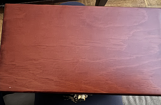 And speaking of which, pictured is the paw print I received as well. Did they even try to center it? It's not like they couldn't do it over with how messy it came out. For comparison, I have the one the vet did next to it after putting her to sleep. And again, for nearly $400, could I at least get a dollar-store-quality protective plastic shield over the foam?? Guess that is too much to ask. The one the vet did has a glass cover. Theirs (the white one) has nothing. And wait, let me also put her nametag on the box myself too, because we couldn't even do that.