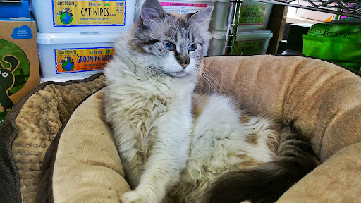 The cat I had was eating Friskies, and he kindly told me that it's not great quality. My friend confirmed this by saying it's like McDonald's for cats, a lot of fillers and not nutritious. So I picked out other healthier, quality options with his help. I am so glad I stopped by and picked up everything! Also, the cat in there is...