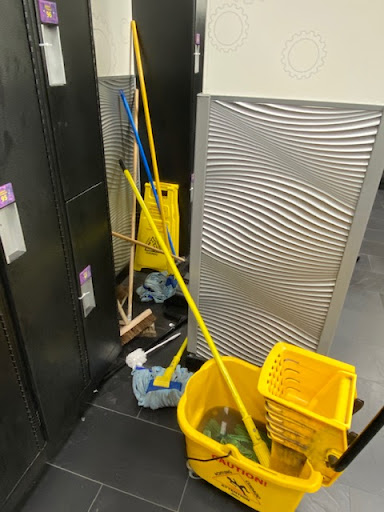 However, it is by far the filthiest gym I've ever been to. Some of the things I've seen, especially in the women's locker room, are just unspeakably horrifying (as a mild example, the photo demonstrates how cleaning supplies are typically stored). There is always some manner of excrement, bodily fluid or mysterious stain anywhere I look. Getting water from the fountains, now covered in tape and never cleaned, requires fighting a gag reflex. Even the "soap" smells god-awful and I'm pretty sure the sprays for wiping down equipment have no actual antibacterial properties. And this isn't a "speak to the manager" type of issue: the whole branch is in need of some serious renovation and deep cleaning. I'm honestly not even afraid of contracting COVID here because the microbiome must be so potent as to create its own sort of...