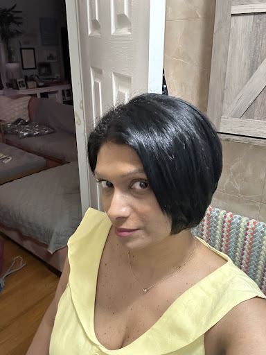 Once at the salon everything was great and then I was paired with Dalune. I showed her pictures of the style I wanted, pictures of my current hair texture when styled, pictures of my hair texture prior to me dying it a few months ago, and we discussed maintaining some of the length. Dalune did absolutely NOTHING I requested. I left looking like a hot mess furball. I requested bangs and specified that they be to my eyes. THEY’RE ABOVE MY EYEBROWS NOW. It also sucked that in the beginning it felt as though she knew what she was doing until she couldn’t drop the scissors and when she finally did she clearly didn’t know how to style my hair and began asking me for pointers. She only used two products. I have no clue what the first product was and then midway through diffusing and constantly rubbing her hands through my scalp while diffusing she decided to throw in what I suspect was mouse. When she finally finished she said “I know it’s short but you haven’t had it this short in a while so you’ll get used to it”. No, I’ll have to get used to it because it isn’t what I requested.