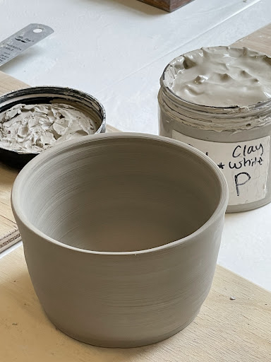 Today was the first time I ever made anything on a pottery wheel. I had no idea what I was getting myself into, but Riley made it super easy to learn how to throw clay. She showed me how to slam the clay into the center of the wheel and keep it there, even though at first it was wobbling all over the place. With her help I was able to finally get it centered and stable. I really liked the way she broke down each step, from centering the clay to bringing it down to making the walls to finding the center and spreading it apart.