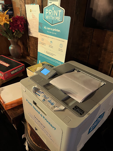 Very smooth printing experience. You can (and should) do everything at home first (send/upload your documents and pay) and then come to the cafe to print and take it. Once you’ve paid, you’ll receive a code by email so at the printer itself you input the code and it will only then print for you. The instructions are super clear on their website and it was all very easy to navigate. Since it’s in a cafe, they are open late which is very convenient. They say all documents are automatically deleted from their servers afterwards as well so it’s secure. Only downside is that the printer is in a corner where there’s a couch and a table right next to it so if there are a lot of people at the café, you kind of have to climb over people to get to...