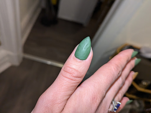 So when this salon had an entire visual chart with nail shapes on the walls so clients could actually point to them when requesting the specifics of what they want from their nail tech, I immediately went to the wholly dead on graphic design of a fingernail that is the spitting image of my nails I posted in my Hyde Park Nails Google review.