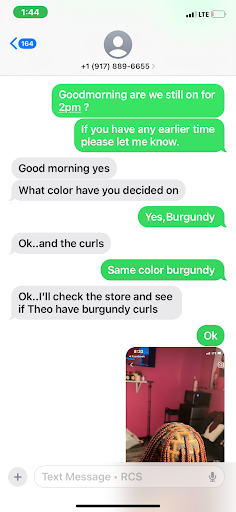 First off, she works from home which she shouldâve been upfront about, instead of just giving me the address with no apt until I arrived so I wouldnât know itâs a home (especially due to COVID.) Then she had me wait almost an hour past my appointment time. She rushed my braids, did it completely sloppy and had someone else finish my hair. Then, when I explained to her I didnât like that the parts in my hair were super uneven, she said âshe canât fix it.â She was overpriced and had an attitude. Definitely not salon quality work on my hair. Not professional at all. I thought because of her reviews I was in good hands but my guess is her good reviews are from her...