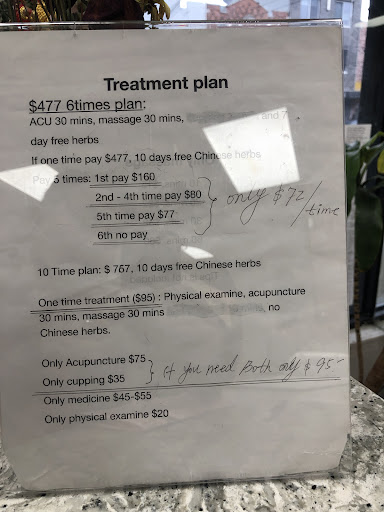 Read moreThis place used to be a good place, now they asked for a massage , massage ,massage... this is acupunture center nor massage place. At the end I accepted a 10 min. massage since the lady (an assistant who does not know anything about medical issues ), was asking me many times... but after the massage my ankle got worse 🥺, ( I should go just for acupunture ), I do not going back to this place any more. I did a late research and I realized that I should not get any massage for my ankle pain. This time was a doctor ( man ) , I did not see the main doctor ( she ) , she was...