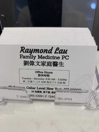 Read moreWell Dr Raymond lau he really took his time listening to my health issues was very attentive and very concerned about my issues I really loved the way he explained what he was going to do, and what kind of blood tests I was going to have and explained everything in details he really takes time to listen and doesn't rush you out .he is very friendly kind and really cares about what medication he is going to prescribed to his patients he is a Dr who cares, in the well-being of his patients...