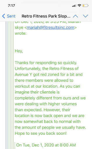 The customer service is terrible. I have been trying to close my account for a year .... haven't been to the gym in more than 18 months and they continue to take money out of my account every month. A year of sending emails and making phone calls only to be told that I must go into the location in person to close my account. In the middle of the pandemic, retro fitness would not close my account unless I came to the club in person because "that's what is in the policy agreement".