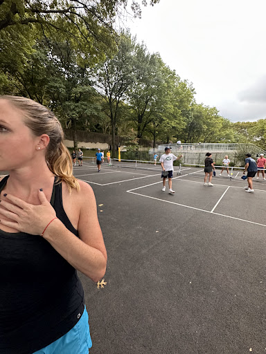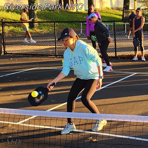 Riverside Park Pickleball has 5 public courts. These are dedicated to pickleball with permanent nets, permanent lines. Open Play from sunrise to sunset. Beautiful view of the Hudson River. Levels of play range from beginners to advanced (mostly Intermediate Players). There are shade provided by tall trees. There are three picnic tables for public use. The pickleball community holds pot luck breakfast/lunches and other events throughout the year. There is a bike rack to secure your bicycles and scooters. These courts are getting more popular everyday. On average There are anywhere from 20 players to 60 players waiting in the queue to play. It is 4-OFF and4-ON. The wait ranges from 5-10minute to 30-40minute on weekends....
