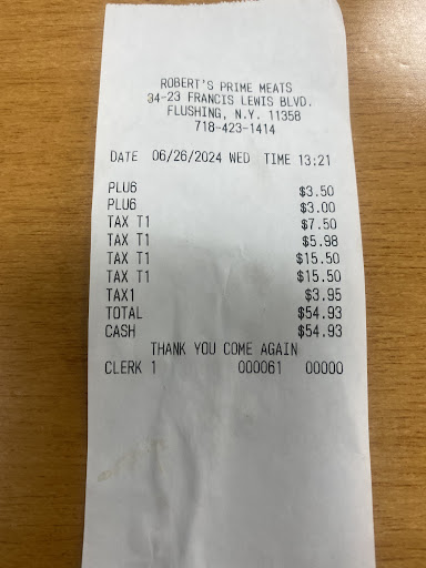 Read moreWARNING! They charge you for container and wrapping weight as well. Usually we get steaks and meat from Fairway or other butcher shops in the city. This time we got unplanned BBQ and got steaks from Roberts which was nearby. Btw we bought ribeye steak for $45 per pound worth $200. When weighting the meat worker didn't account wrapping weight, so we were charged for all wrapping paper $45 per lb as well. When I tried to say something about that worker refered to his boss standing next to him, who told us that they do it this way if I don't like it just don't come here. OMG never seen such DISRESPECT to customers. Never going to go back and don't recommend anyone. There are bunch of better butcher shops with fair weighting...